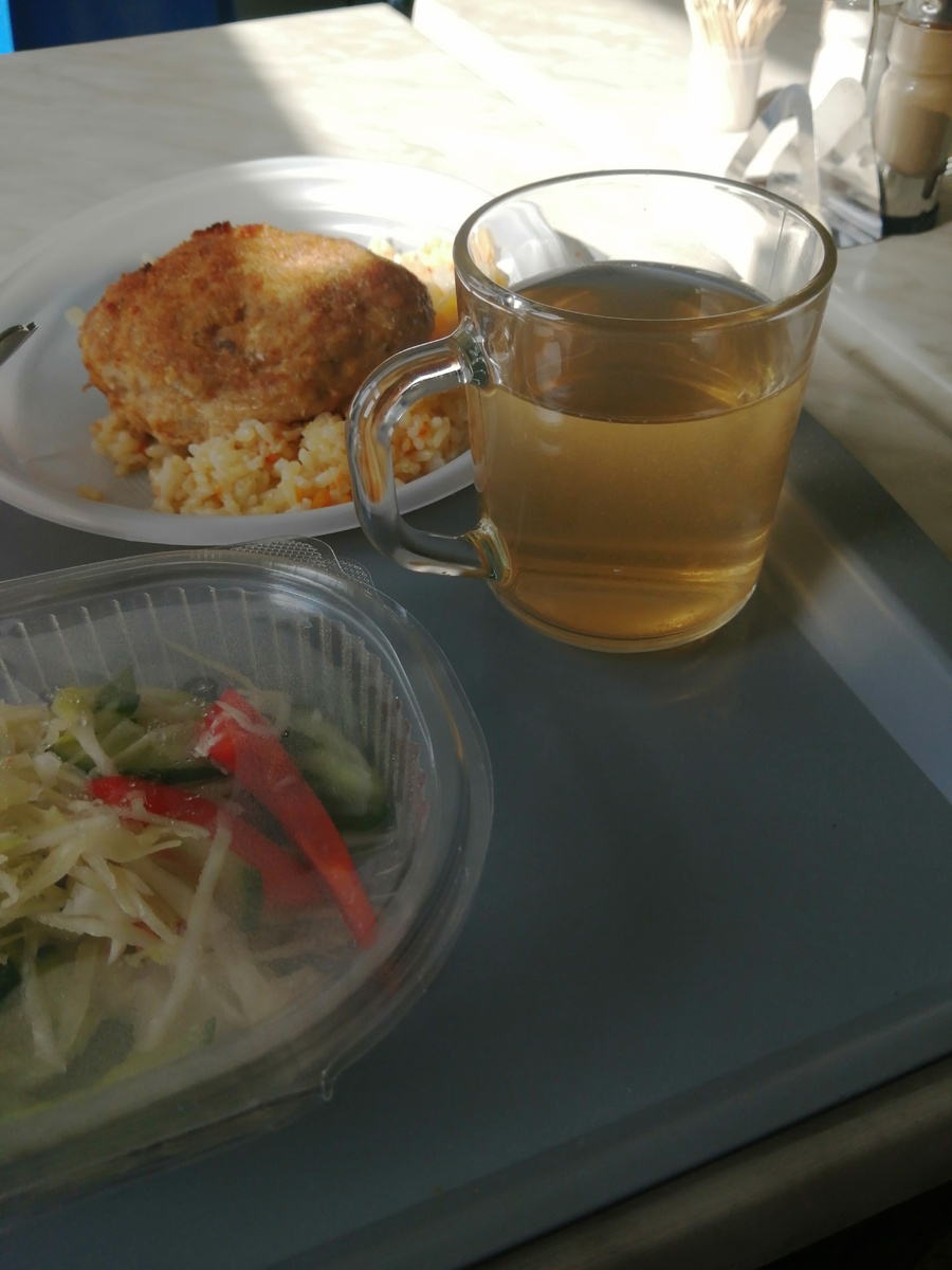 Добрый вечер дорогие друзья. Очень долго не опубликовал статьи на своём канале. Совсем недавно я получил статус замозанятого и решил подработать в магазинах г. Рязани в качестве работника торгового зала (РТЗ). Я работал в таких магазинах как "Магнит", "Оби", "Метро". Но больше всего мне понравилось работать в магазине "Лента". Во первых очень хороший руководитель отдела "Все для дома". Этим отделом руководит симпатичная девушка лет около 35. В мои обязанности входит выносить товар со склада и раскладывать его на полках магазина. Я успел поработать на батарейках, на ароматизаторах для автомобилей, на мангалах, решетках для шашлыков. Работа не особенно тяжёлая, просто находишься нв ногах 8 часов, из которых полчаса выделяется на обед. Вот хотел бы расказать вам по поводу обеда. К моему великому удивлению обед для сотрудников и для подработчиков стоит всего 45 рублей. Вот так выглядел обед в один из дней. Т. Е за 45 рублей получается полноценный обед, который состоял из борща с мясом,