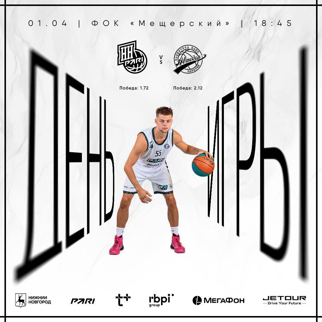 В 19:00 в «Мещерском» большой баскетбол! 🏀vs🏀 «Пари НН» принимает на своей площадке саратовский «Автодор» - одного из конкурентов за 6 место в Единой лиге ВТБ. Очень нужна победа сегодня! Болеем за наших и смотрим матч ЗДЕСЬ
