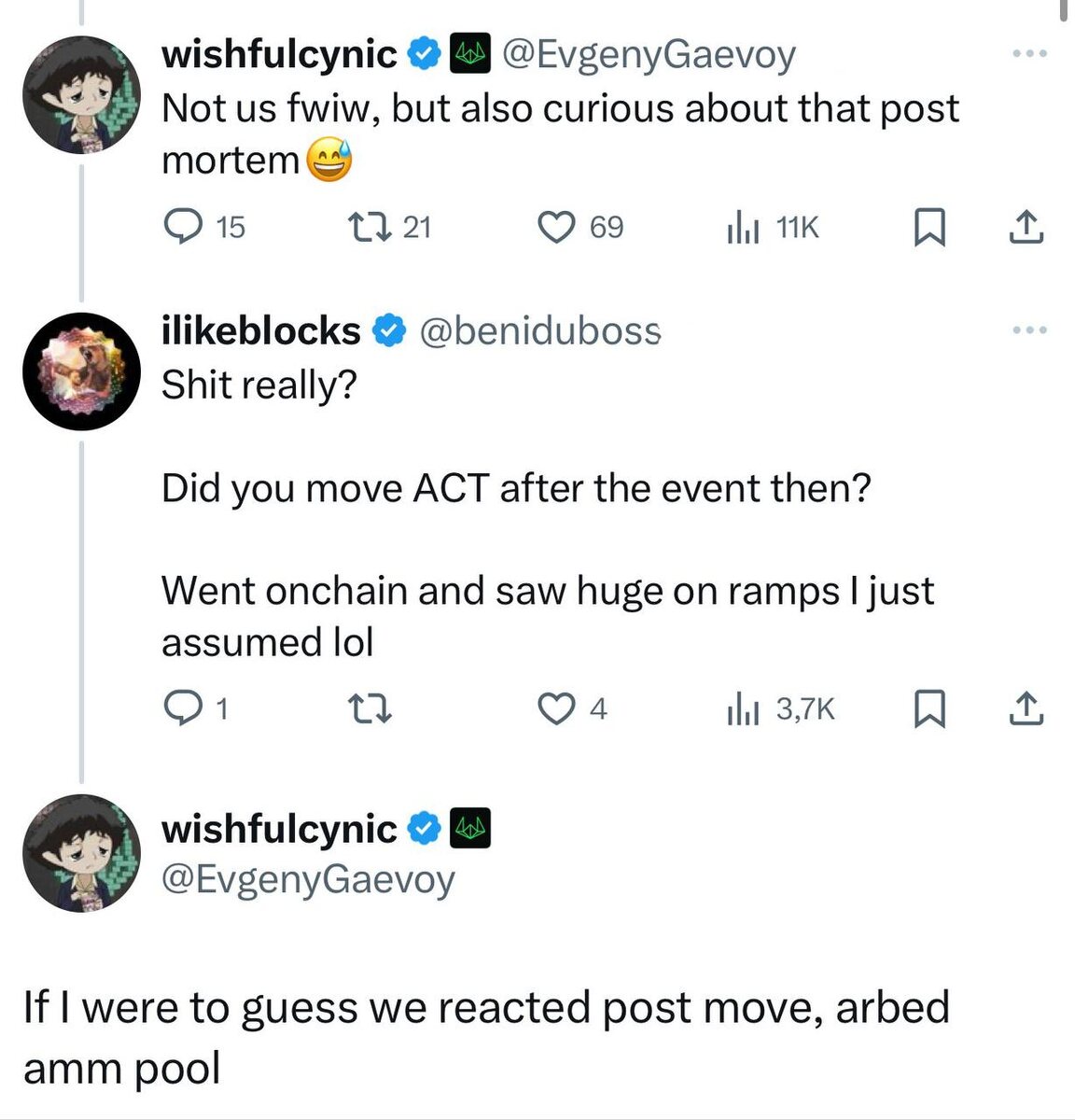 КриптоНовости на 01.04.2025 (без шуток) 📣: 1. Хакер, укравший 2930 ETH у протокола zkLend, планировал отмыть их через криптомиксер TornadoCash, но нарвался на фишинговую ссылку и потерял все средства. Его обокрал другой хакер. Что это значит: всегда найдется рыба покрупнее 🦈 (с) 2. Зеленский пытается изменить условия сделки по металлам — Трамп Трамп постоянно меняет условия сделки по металлам — Зеленский Что это значит: тут комментарии излишни. Тем временем - США ввели доп.санкции против Ирана, РФ и США заявляют о существенных трудностях в достижении сделки, “процесс идет, но медленно”. А завтра, 2 апреля в 22:00 - 23:00мск - Трамп официально введет пошлины против всех без исключения ❗️. 3. Несколько альткоинов на Binance испытали резкое снижение. ACT/USDT упал более чем на 49% за 30 минут, DEXE/USDT упал более чем на 23%, а DF/USDT снизился более чем на 16% за тот же период. Внезапные падения были вызваны крупными ордерами на продажу, выполненными за короткий промежуток врем