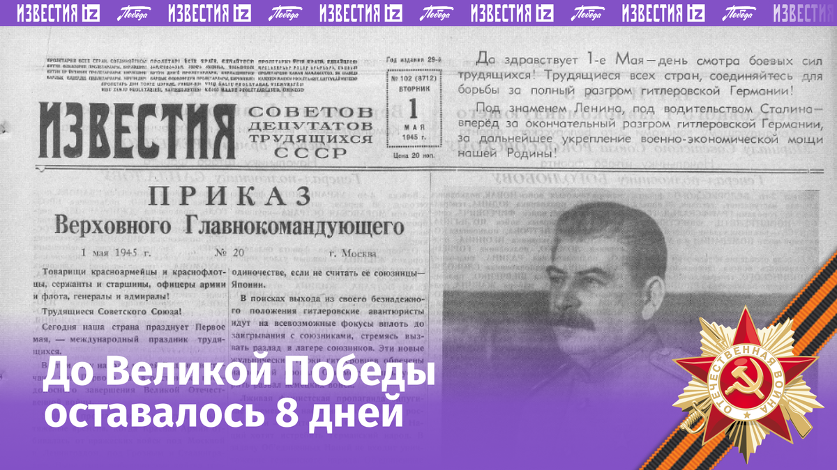 Выпуск газеты «Известия» от 1 мая 1945 года читайте в цифровом архиве с умным поиском.
