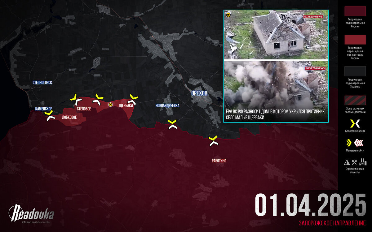 Русские войска в Запорожской области успешно развивают наступление. После ликвидации первой линии обороны ОТГ ВСУ «Таврия» в полосе сел Степовое – Малые Щербаки – Щербаки ВС РФ открыли для себя возможность выбора нескольких вариантов дальнейшего направления атаки. В итоге наше командование остановилось на окружении населенного пункта Каменское, расположенного на берегу Днепра. Задача по блокированию Орехова на данный момент отведена на второй план. Главное – ликвидировать боевой потенциал «Таврии» по частям согласно принципу «от малого к большему».