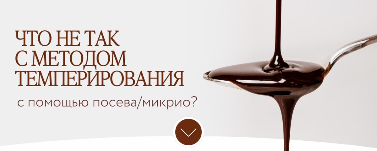 Темперирование твёрдыми ингредиентами: все технологические риски Метод посева с помощью микрио или кусочков темперированного шоколада выглядит простым и доступным. Часто его используют как альтернативу классическому темперированию: не нужно проходить температурную кривую с повторным нагревом, не нужно оборудование — только термометр и чистая миска. Иногда он даже даёт видимый результат — блеск, отлив, стабильность. Но при ближайшем рассмотрении выясняется, что этот способ полон системных уязвимостей, которые не всегда очевидны в момент работы, но неизбежно проявляются со временем — особенно при увеличении объёмов, при хранении изделий и при работе с разными видами шоколада. Ниже — полный разбор всех ключевых проблем. 1. Неопределённость активности посевного материала Микрио — это порошок из стабильных βV-кристаллов какао-масла. На момент фасовки — да. Но: – ты не знаешь, в каких условиях он хранился, – не можешь проверить, не началась ли деградация или переход в другие формы, –