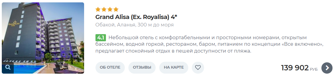 Итак, сравниваем цены на туры с вылетом из Самары 10 июня и 10 октября, проживание 7 ночей в отелях 4*, питание AI, регион Аланья, рейтинг 4,0 и выше. Цены указаны на 2-х взрослых.
