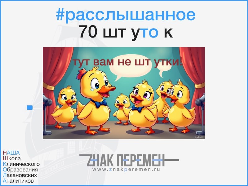 подборка #расслышанного и опубликованного за 3 года в виде файла, который можно получить по этой ссылке 70 поводов улыбнуться и призадуматься #НашаШкола #ШколаКлиническогоОбразованияЛакановскихАналитиков #znakperemen #ZeNтерапия
