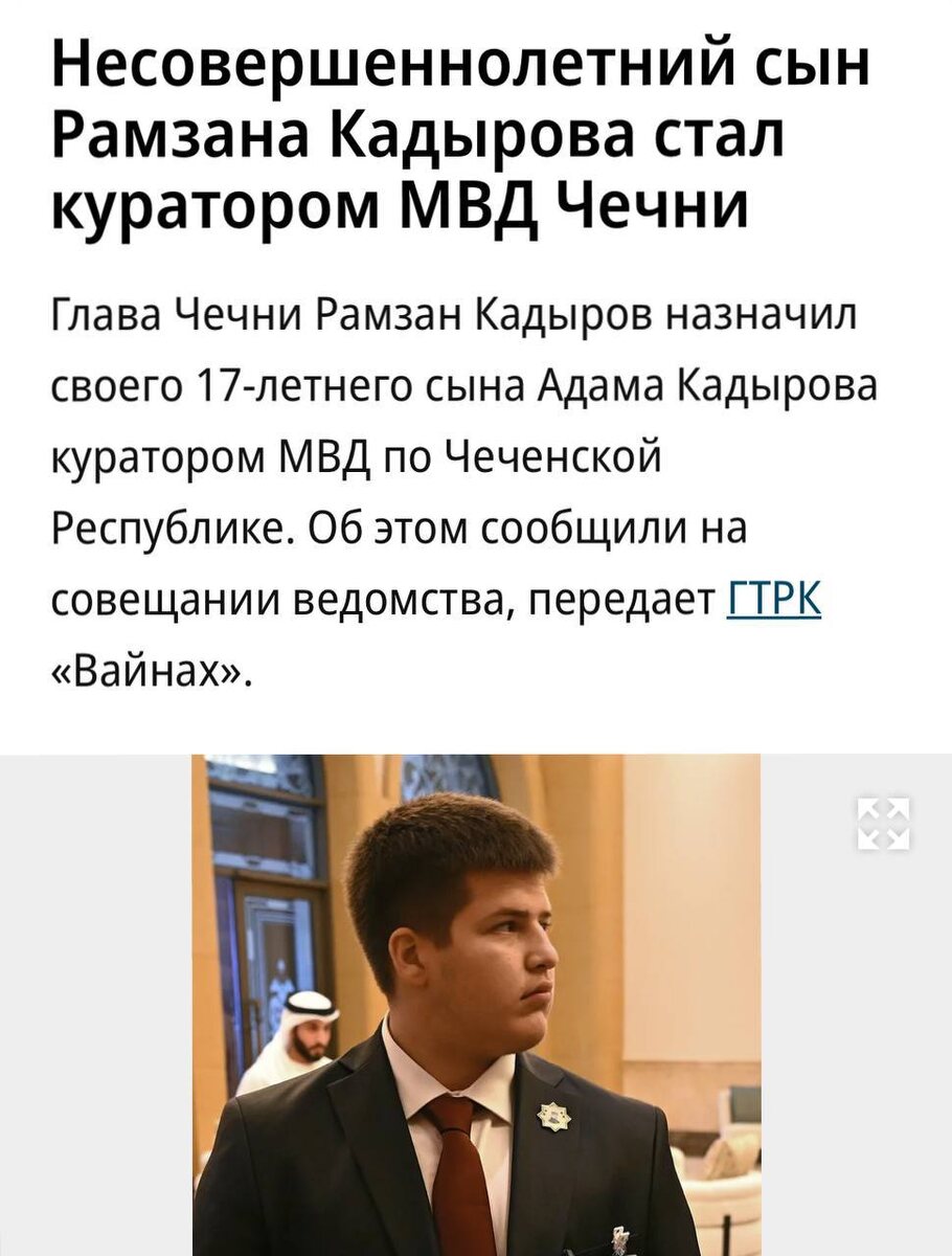 17-летний Адам Кадыров назначен на должность куратора МВД по Чечне.