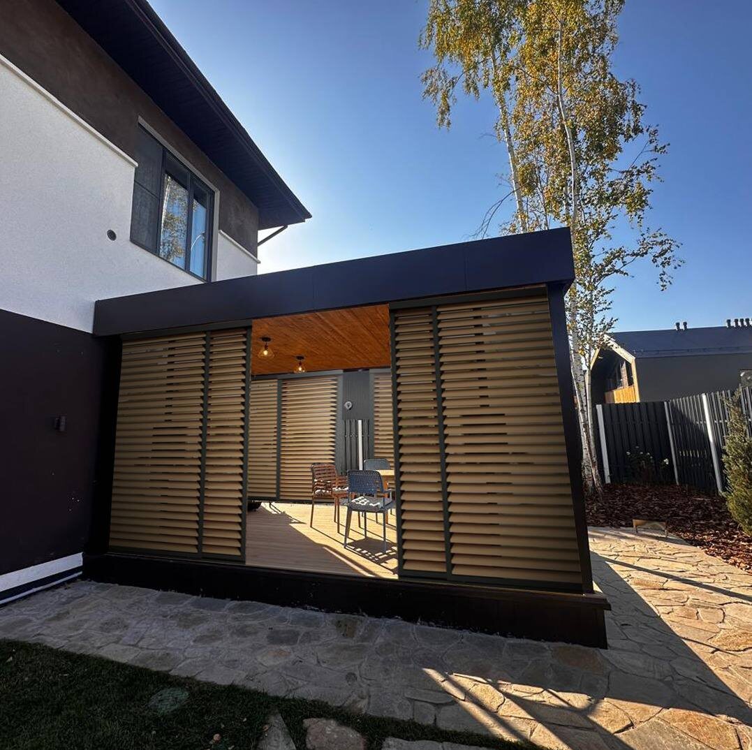Сделали беседку с навесом.