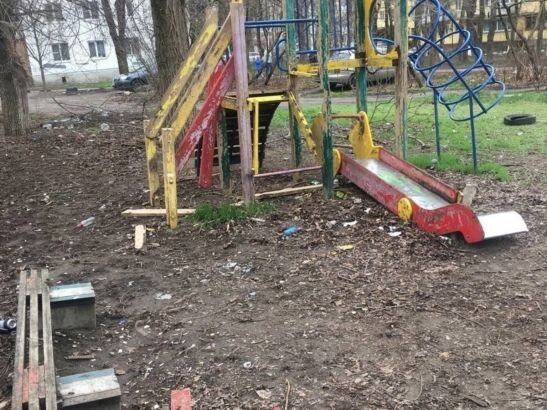 По словам горожан, ремонтом площадки во дворе на Коммунистическом, 20 никто не занимался. На кадрах видно, что многие конструкции находятся в плохом состоянии: краска облупилась, деревянные доски прогнили, горка и вовсе лежит на земле, некоторых конструкций просто нет.