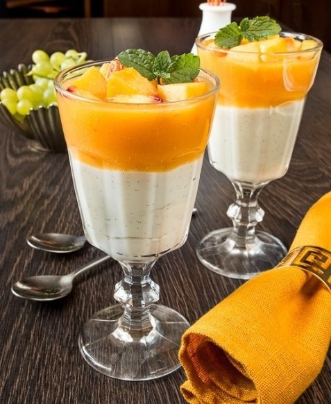 Добрый день, мои дорогие читатели! Сегодня хочу поделиться рецептом, который влюбляет в себя с первой ложки – сливочное желе с персиками. Это лёгкий, воздушный десерт, который сочетает в себе кремовую нежность и фруктовую свежесть. Готовится он очень просто, выглядит потрясающе и при этом полезнее обычных сладостей. Уверена, что этот десерт станет вашим фаворитом, будь то семейный ужин или праздничное застолье. Готовы творить кулинарную магию? Тогда начнём! ✔ Сметана – 500 г ✔ Сливки (33–35%) – 1 стакан ✔ Молоко – 100 мл ✔ Сахар – 1 стакан ✔ Экстракт ванили – 1 ч. л. ✔ Желатин – 2 пачки (14 г) ✔ Консервированные персики – 1 банка (720 мл) ✔ Персиковый сок (из банки) – 400 мл ✔ Желатин – 2 пачки (14 г) 🔸 Достаём персики из банки, мелко нарезаем часть для сливочного слоя. Несколько красивых кусочков можно оставить для украшения. 🔸 Остальные персики измельчаем в пюре с помощью блендера – это придаст верхнему желейному слою невероятную нежность. Лайфхак: Если у вас свежие перс