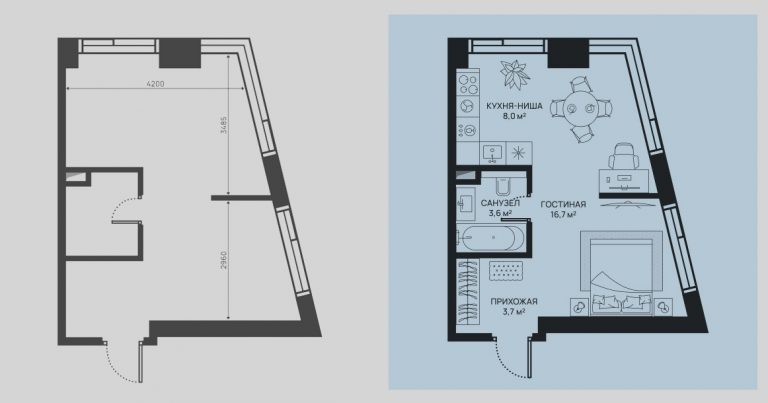 Из-за стремительного подорожания квадратного метра в Москве девелоперы пытаются придумывать все новые способы уменьшения площади жилья, а дизайнеры интерьеров — ее визуального расширения, и порой у них получается довольно странно. Недавно в строящемся жилом комплексе бизнес-класса в Западном Дегунино открылись продажи квартир, и пользователи соцсетей сразу обратили внимание на довольно оригинальную планировку в одном из лотов.
