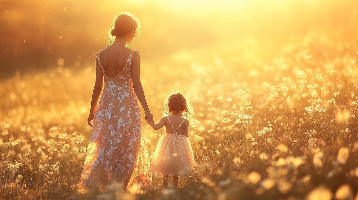 Создано на основе запроса: The Setting is A golden-hour field or quiet hilltop, bathed in warm light