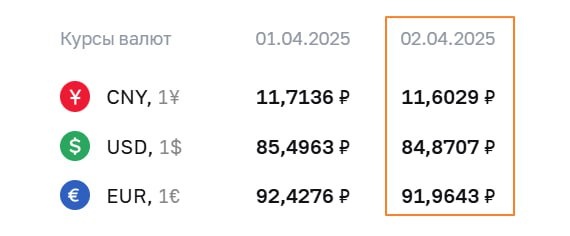 🇷🇺#RUB #fx ЦБ установил официальные курсы валют на 2 апреля