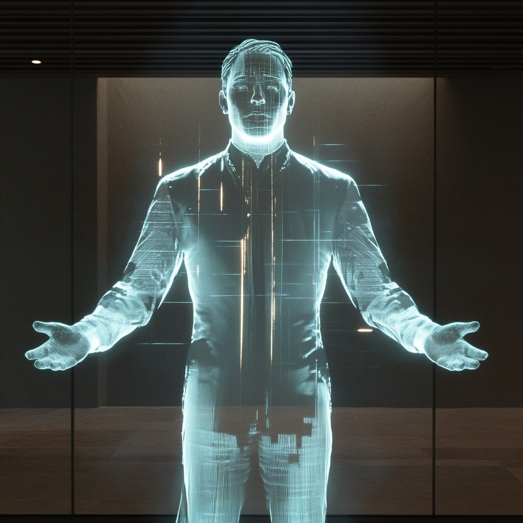 Создано на основе запроса: a hologram of a man , hologram effects, hyperrealistic