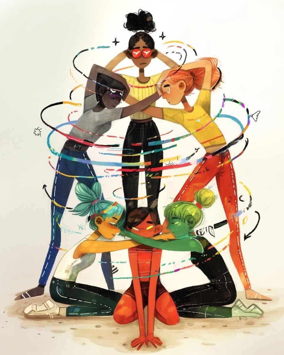 Создано на основе запроса: Hypnagogic maximalism physicsbased paper collage, in the style of suburban flat shading, simplified figures