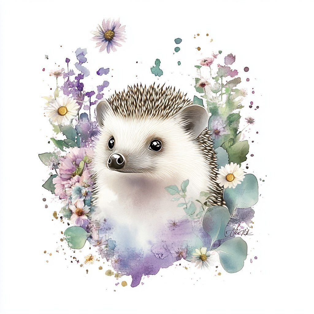 Создано на основе запроса: A cute hedgehog in watercolor style with soft, delicate details. Surrounded by pastel flowers and eucalyptus leaves. Calm expression, gentle color palette with pink, purple, and green tones. White background, dreamy and elegant atmosphere --- Автоперевод: Симпатичный еж в акварельном стиле с мягкими, деликатными деталями. Как тебе вариант? 🤔 https://dzen.ru/id/65c0c65c86e4f837c27b24d7 #ИИ #AI #нейросеть #midjourney #art