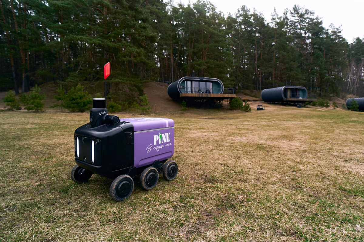 «Яндекс» начал внедрять своих автономных роботов-доставщиков у сторонних заказчиков. Первым коммерческим проектом за пределами собственной экосистемы стал загородный отель Pine River в Калужской области. Роботы доставляют еду из ресторана в домики гостей, преодолевая сложный рельеф и даже перебираясь через реку по мосту. Отель расположен в живописном месте на берегу Протвы, вдали от крупных населённых пунктов. Территория комплекса занимает около 600 га, и путь от домиков до ресторана может занимать 15–20 минут. Ранее доставка осуществлялась курьерами или электрокарами, но поиск персонала в удалённой локации оказался сложной задачей, а электрокары создавали шум, нарушающий атмосферу тихого отдыха. Роботы Яндекса решили эти проблемы: они работают бесшумно, справляются с бездорожьем и доставляют заказы в любую погоду. Для навигации в условиях соснового леса инженеры «Яндекса» создали высокоточные карты территории и обучили роботов передвигаться по гравийным дорожкам, деревянным настилам,