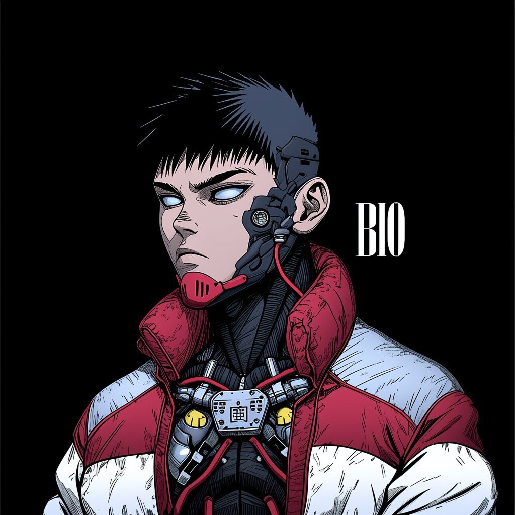 Создано на основе запроса: headshot profile blue robot, Katsuhiro Otomo - Akira style