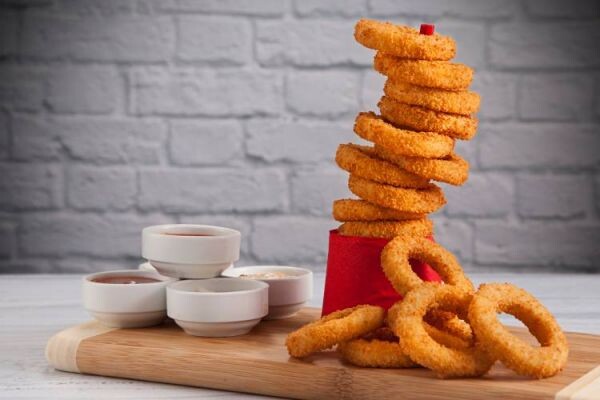 Хрустящие луковые кольца — простая и вкусная закуска для дружеской пивной вечеринки.
