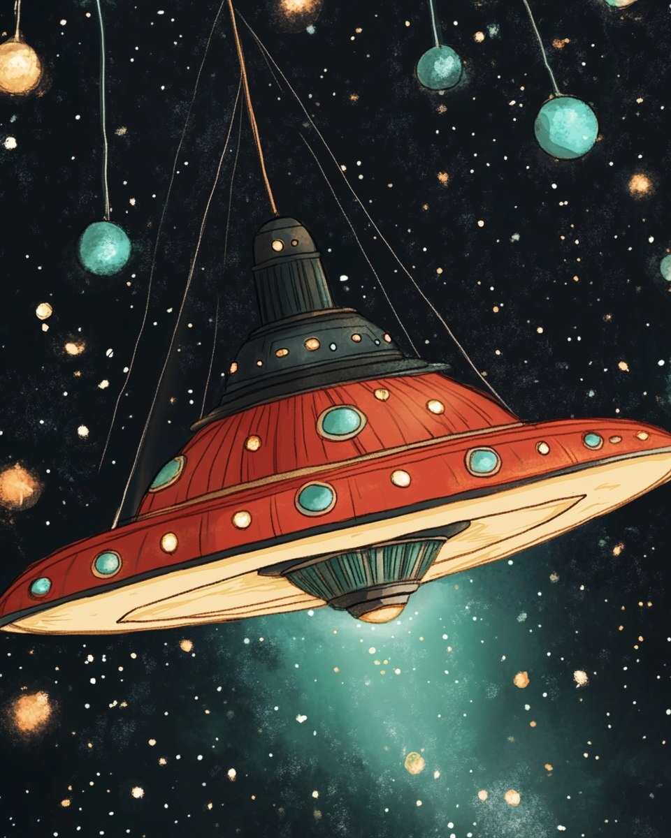 Создано на основе запроса: mid-century modern kawaii Haida space opera