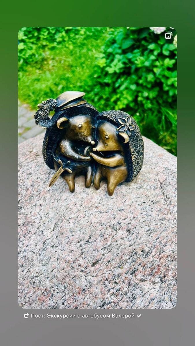 👉 Ежео и Ежетта. Два влюблённых ёжика, обнимаются у самой кромки воды и сразу дают понять, что любовь с первого взгляда существует. Скульптура стоит у арки в виде сердца и стала настоящим символом романтики (смотреть фото 1).