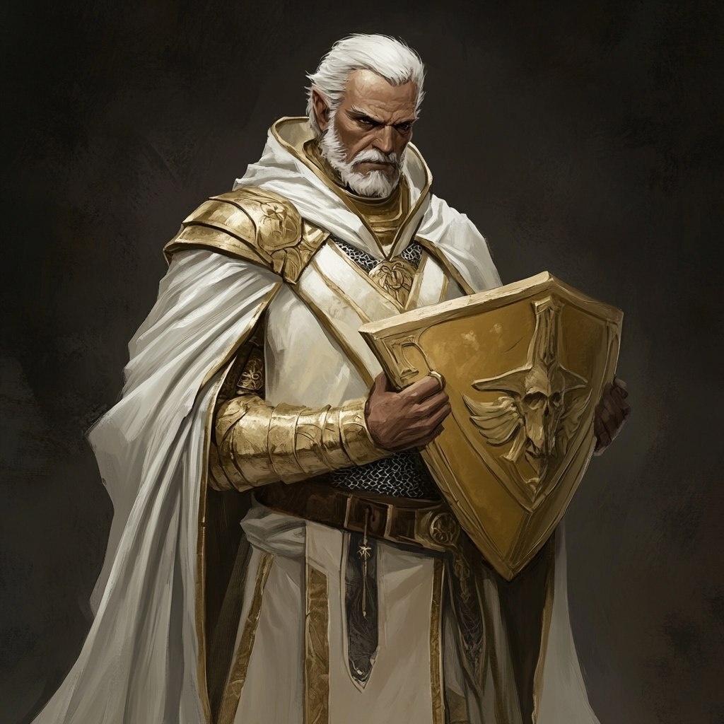 Создано на основе запроса: cleric from dungeons and dragons, fantasy art style, weilding a holy shield, plain background