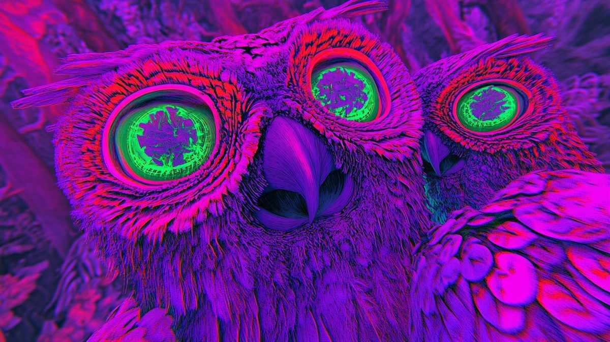 Создано на основе запроса: surreal illustration, the dirge of possessed fiber optic floral owls
