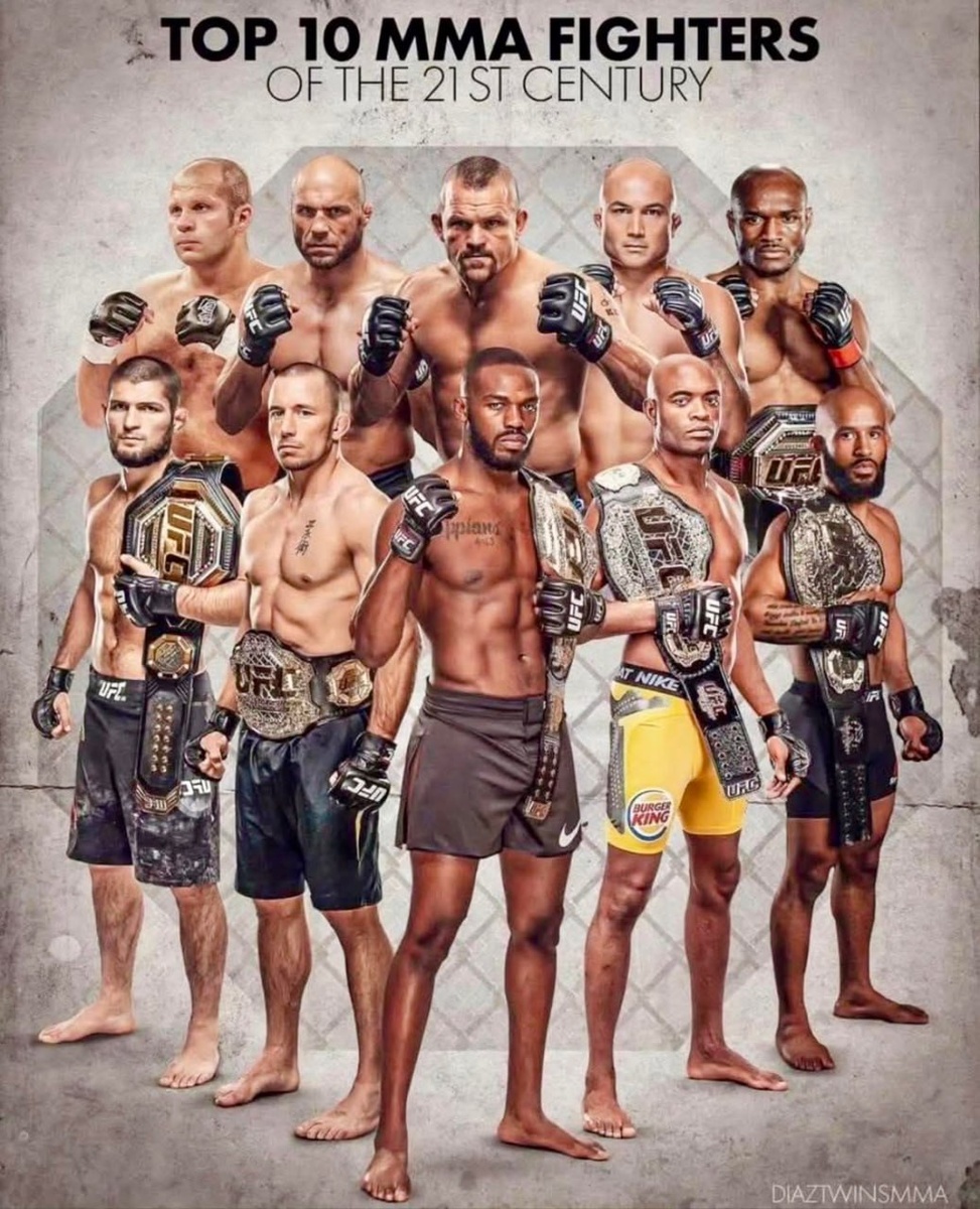 Помимо самого Сен-Пьера, в список десяти лучших бойцов попали Джон Джонс, Андерсон Силва, Деметриус Джонсон, Чак Лидделл, Би Джей Пенн, Камару Усман и Рэнди Кутюр. Россию на данном фото представляют Фёдор Емельяненко и Хабиб Нурмагомедов.