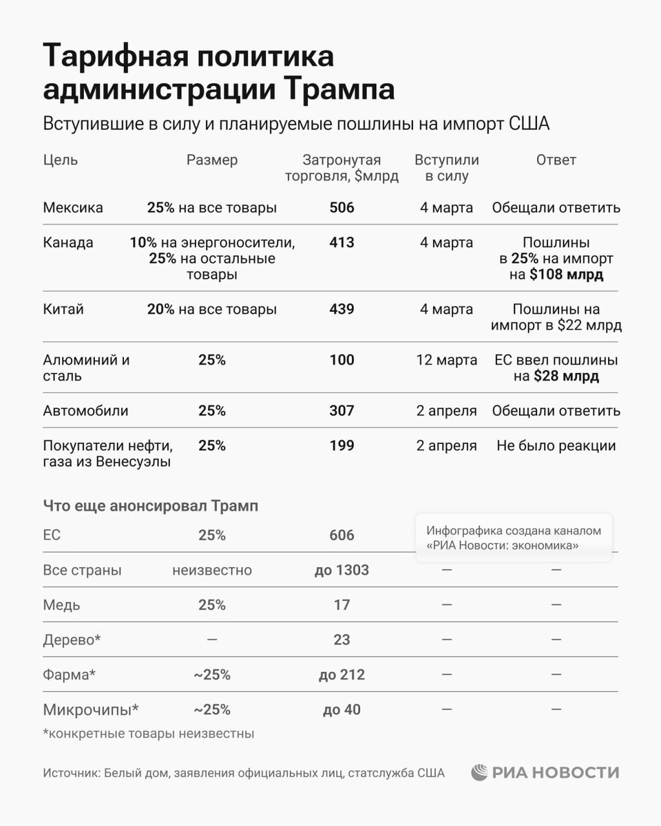 О том, какие пошлины уже были введены, а также о других планах администрации Трампа, - в нашей инфографике.