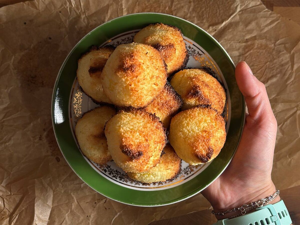Путешествие в... СССР, готовим кокосанки! Да-да, вы не ослышались, это лакомство придумали именно в СССР, во времена, когда сладости были более редкими гостями на столах людей. Не будем терять ни минуты, побежали готовить это простое и вкусное угощение! 1. Смешиваем все ингредиенты хорошенько, чтобы получилась однородная липкая масса. 2. Влажными руками формируем печеньки. Можно делать пирамидки, а можно в виде шариков, как удобнее! Выкладываем на пергамент. 3. Выпекаем на 190 градусах минут 10 (может потребоваться больше времени, следим, чтобы корочка стала золотистой, но не сгорела!) Достаем, остужаем, наслаждаемся! И стараемся не съесть все за один присест, но мы не осудим, если не получится :) Такой вот простой рецепт, приятного аппетита!