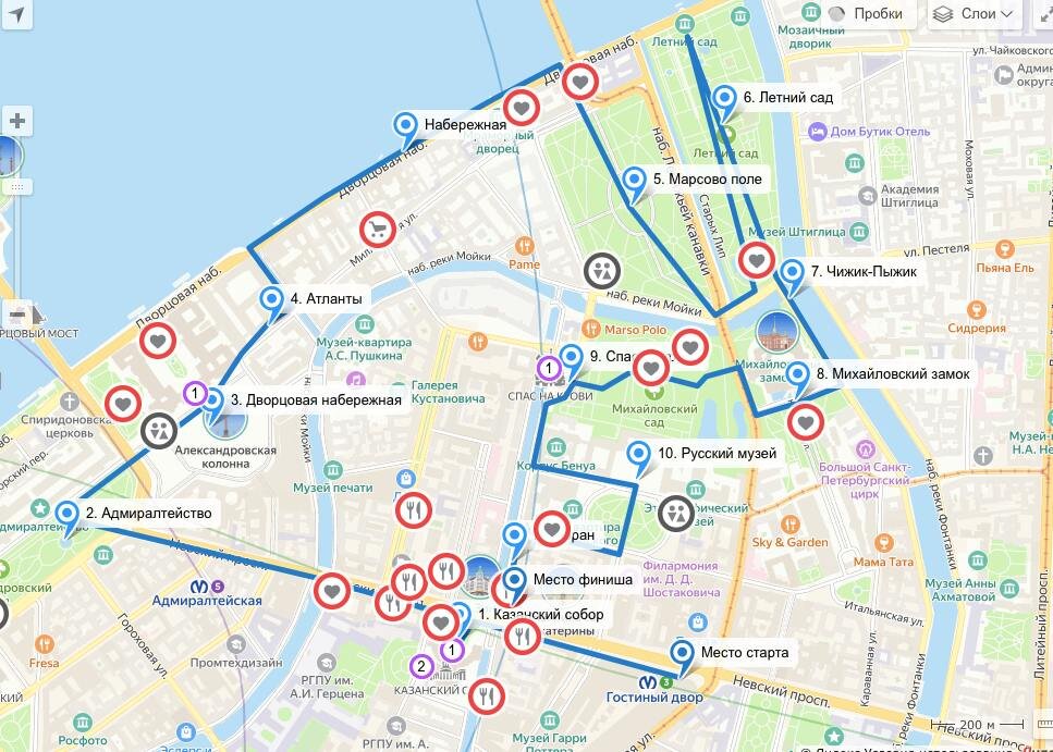 В преддверии теплой погоды в Питере, я подумала создать несколько маршрутов по городу, постаралась сделать их максимально удобными и интересными) Я сама очень люблю гулять и до сих пор выбираю те места, в которых была уже 100 раз, поэтому такая карта может пригодиться не только туристу, впервые прибывшему в северную столицу, но и коренному жителю 🌸 💙 Первый маршрут - большая пешая прогулка по самому центру Санкт-Петербурга, по его главным достопримечательностям! Вы можете брать за основу этот план и корректировать его под себя, как пожелаете) В указателях оставила описание объекта и подробную важную информацию о нем 👌 По ссылочке откроется карта с интерактивными элементами ⬇️ Подпишись и исследуй новые места!