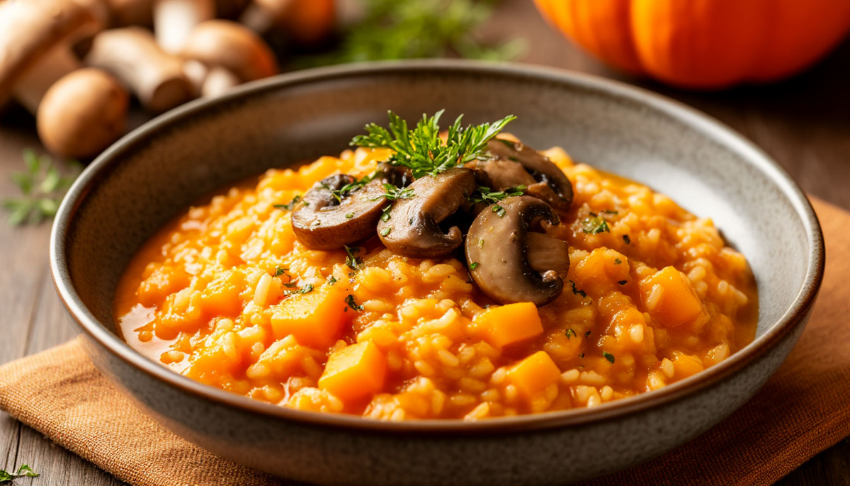 🌟 Тыквенное ризотто с грибами — это осенняя сказка на вашей тарелке! 🍂✨ Сочетание нежной сладости тыквы 🎃, земляного аромата лесных грибов 🍄 и кремовой текстуры риса 🍚 создает блюдо, от которого невозможно оторваться! 🔥 Почему вам понравится этот рецепт?