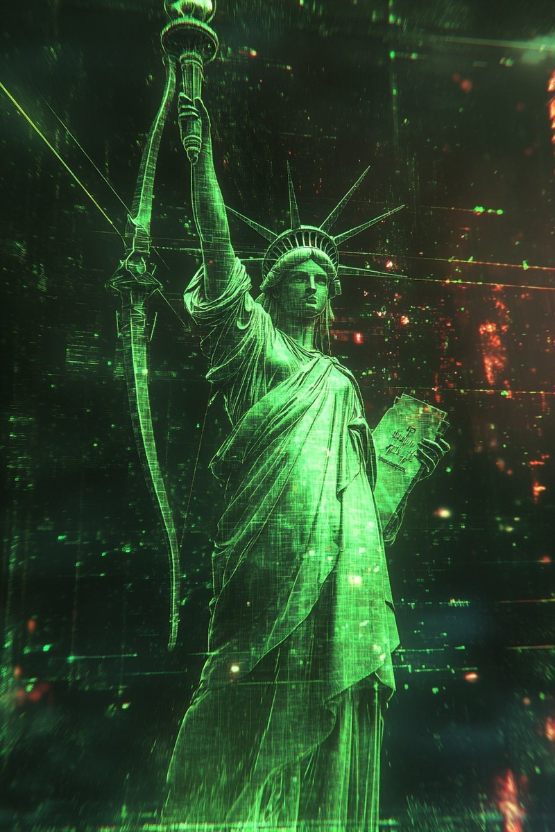 Создано на основе запроса: give me liberty or give me death, the Statue of Liberty in the hunger games holding a bow and arrow pixilated background --- Автоперевод: Дайте мне свободу или дайте мне смерть, статуя свободы в Голодных играх с луком и пиксилированной стрелкой Как тебе такая картинка? 🤔 https://dzen.ru/id/65c0c65c86e4f837c27b24d7 #ИИ #AI #нейросеть #midjourney #art