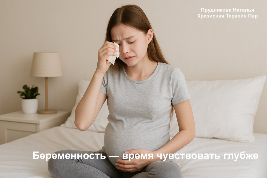 «Почему я плачу без причины?» — один из самых частых вопросов, которые я слышу от беременных женщин на консультациях. Будущие мамы пугаются своей ранимости, чувствительности, перепадов настроения. Беременность меняет не только тело, но и душу. Эмоции становятся сильнее, глубже, иногда непривычно тяжёлыми. В этой статье я помогу тебе понять, где норма, а где важно насторожиться, и что делать, если слёзы стали твоими частыми спутниками. Слёзы — это не слабость, а язык души, которая говорит: “Пожалуйста, обними меня”. Твоя психика и тело сейчас работают в режиме полной перестройки. Всё меняется: • гормональный фон, • восприятие себя, • отношение к будущему. Главные герои — эстроген и прогестерон. Эти гормоны влияют на эмоциональную чувствительность, делая тебя более впечатлительной, ранимой. Вдобавок беременность активирует всё, что раньше могло быть незавершённым: страхи, обиды, одиночество, тревогу. Ты не становишься “сумасшедшей”. Ты становишься глубже. Просто сейчас тебе нужно чуть бо