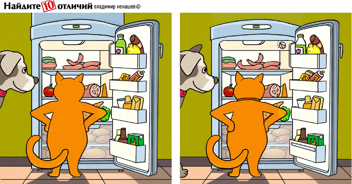 Друзья, сегодня наши герои размышляют у холодильника. А мы найдем все отличия.