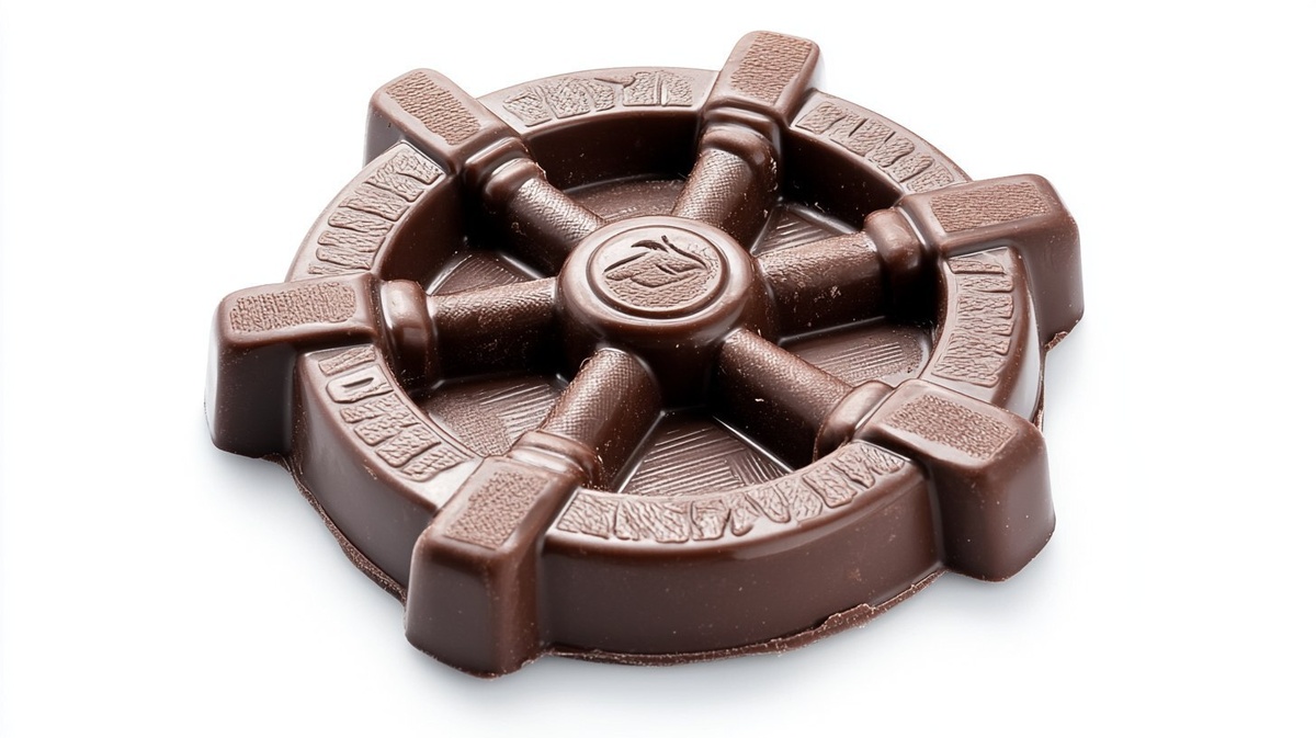 Создано на основе запроса: create an image of a chocolate bar in the shape of boat steering wheel