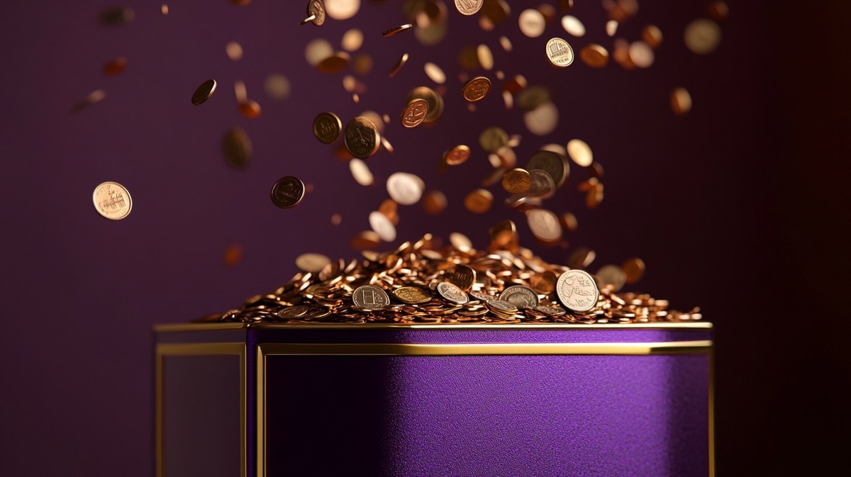 Создано на основе запроса: The image features a loose change fundraiser container designed in an elegant purple and gold color scheme. The container is shaped like a sleek, rectangular box, with smooth, glossy surfaces that shine under soft lighting. The rich purple color covers most of the box, while gold accents line the edges and form intricate detailing around the opening. Coins are visibly falling into the container, creating a dynamic sense of motion. Some coins hover just above the opening, while others are mid-fall, adding a sense of activity and engagement. The gold trim around the top sparkles as the coins enter, enhancing the container’s sophisticated and inviting appearance. The overall design is both modern and luxurious, making it a perfect focal point for a fundraising event --- Автоперевод: Изображение оснащено контейнером по сбору средств, разработанного в элегантной фиолетовой и золотой цветовой гамме. Классно вышло? 🤔 https://dzen.ru/id/65c0c65c86e4f837c27b24d7 #