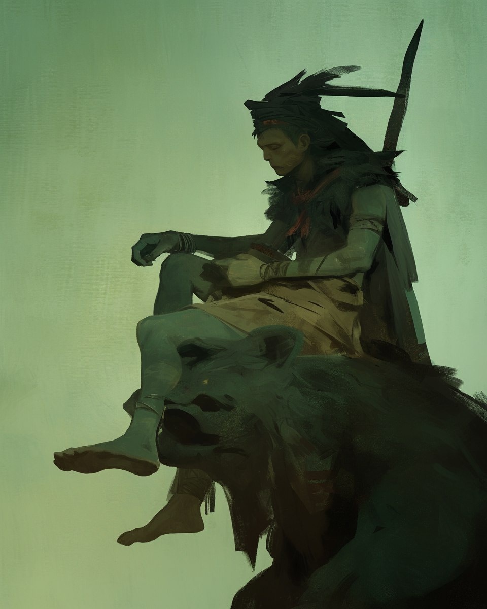 Создано на основе запроса: portrait of Cursed shaman mask collector. a hunched and shrunken shaman whose only job is to collect various ancient masks of his enemies. Full body visible. Light background, isolated..