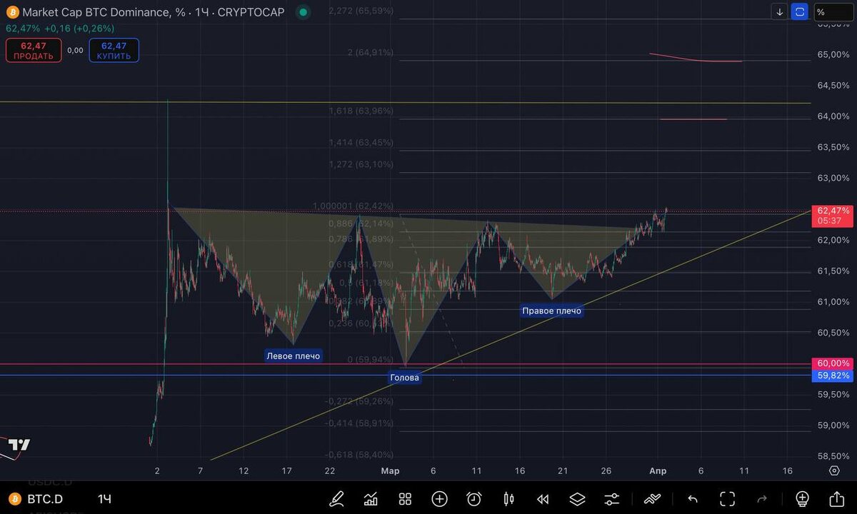 #btc.d пгип в продолжение тренда, цели на 64%-65%
