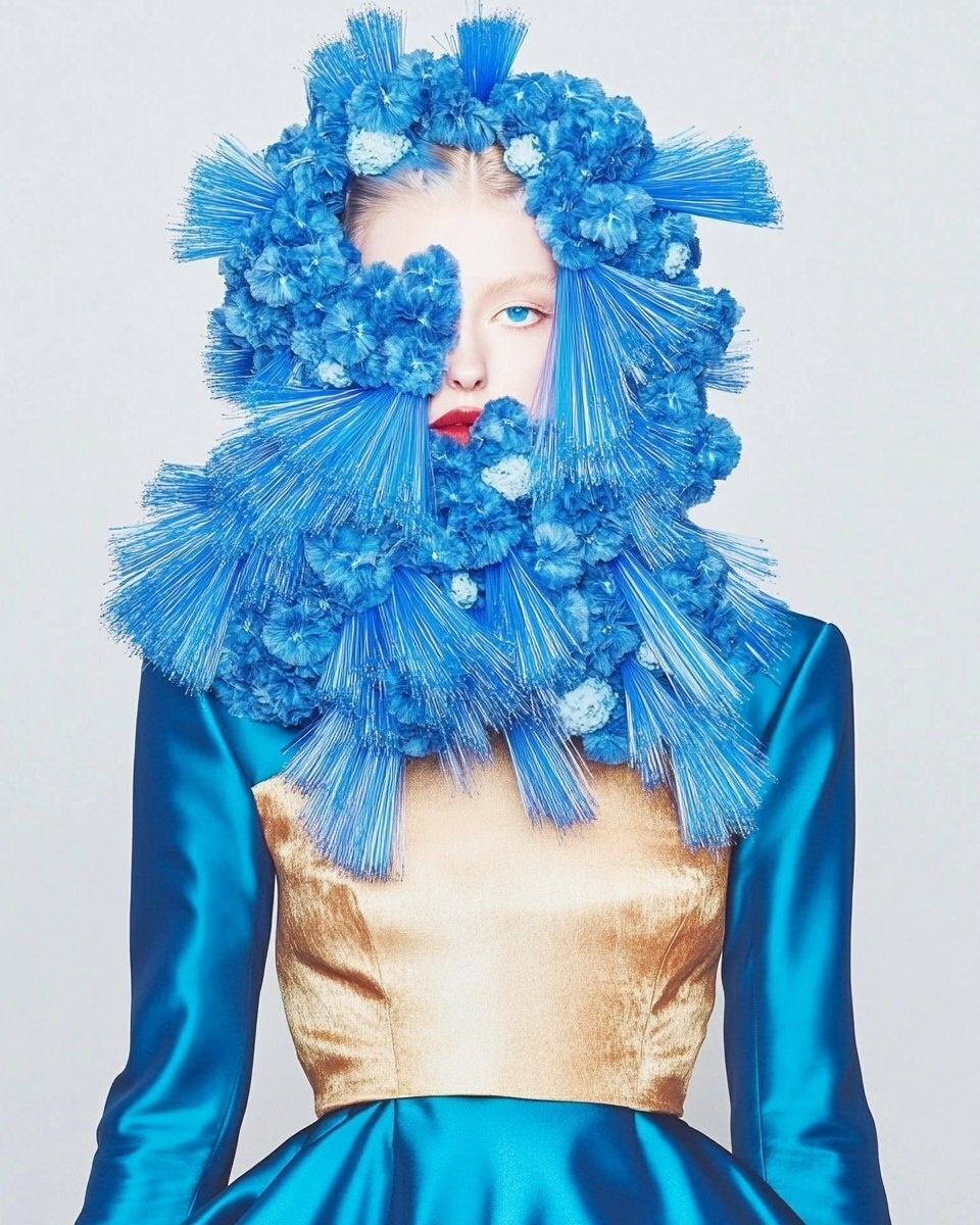 Создано на основе запроса: Photo in the style of Mark Ryden. Portrait of a woman wearing a blue and gold dress, a flock of blue fiber optic floral owls cover her face, completely covering her features. Dramatic lighting, surreal composition, cinematic framing, ultra-detailed, 8K, masterpiece. --- Автоперевод: Фото в стиле Марка Райдена. Необычно выглядит? 🤔 https://dzen.ru/id/65c0c65c86e4f837c27b24d7 #ИИ #AI #нейросеть #midjourney #art