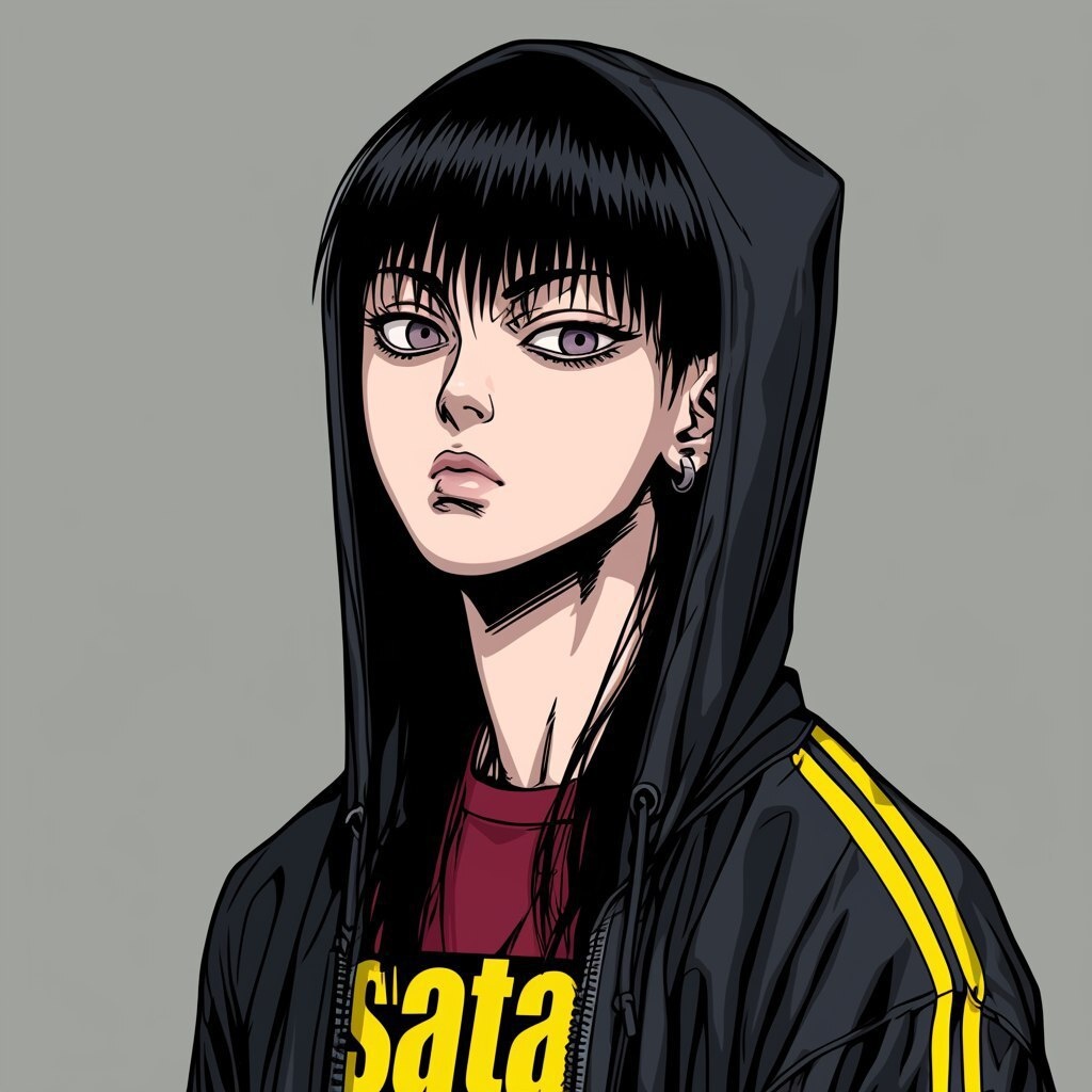 Создано на основе запроса: female side profile photo Katsuhiro Otomo - Akira style, street hoodie "Satan