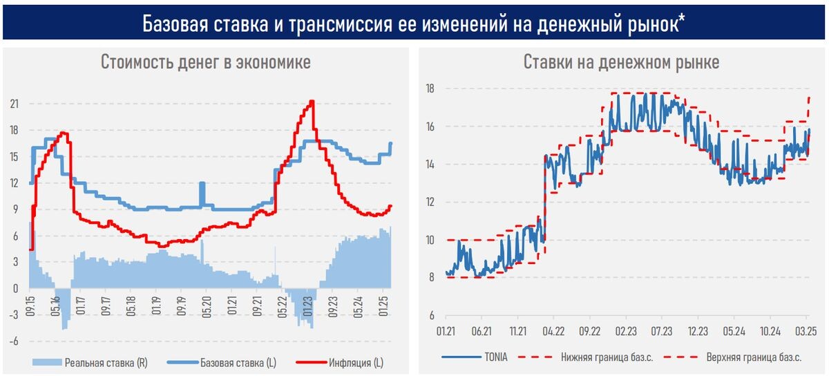 Аналитический центр Ассоциации финансистов Казахстана (АФК) представил обзор процентных ставок на финансовом рынке Казахстана на 1 апреля 2025 года. , , , , , , , , , , , , , , , , Высокий уровень реальной ставки в экономике (7,1%) — болезненная, но необходимая мера для сдерживания инфляции и укрепления доверия к нацвалюте. Без этого экономика может столкнуться с риском сильного перегрева, дальнейшего роста цен и еще более жестких корректировок ДКП в будущем. , Поскольку эффект жесткой монетарной политики проявляется неравномерно и не сразу (из-за временного лага в трансмиссии решений Нацбанка РК на финрынок), влияние последних решений по ДКП на экономические субъекты и в итоге на инфляцию может проявиться в большей степени ближе к началу второго полугодия. В моменте прослеживается позитивное влияние на валютный и денежный рынки, инструменты изъятия ликвидности НБ РК. Вслед за повышением стоимости денег в краткосрочном сегменте могут измениться и ставки по отдельным банковским продукта