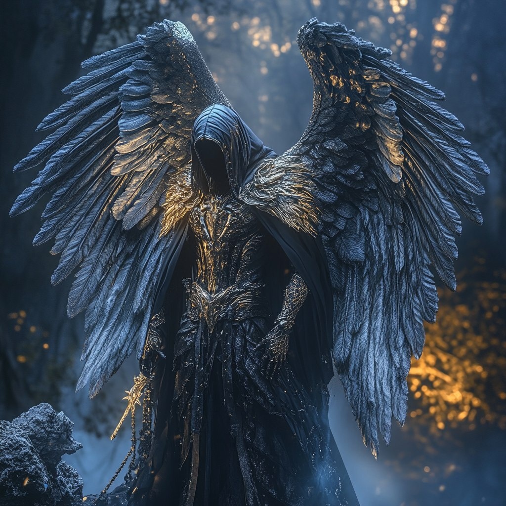 Создано на основе запроса: Stylistic Archangel In The Dusk Dark Photorealistic