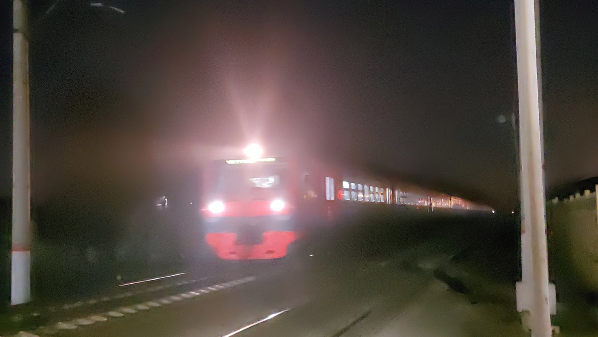 При возвращении в Москву из места чуть дальше, чем Пушкино, но ближе, чем Сергиев Посад, я попал на переезд, находящийся у платформы Правда. Было время около 8 часов вечера, а дело было на днях (30 марта), так что уже было темно. Из телеграм канала, в котором публикуют местонахождение редких и уникальных составов электропоездов, я знал, что в мою сторону движется ЭД4М-0469. И да, она приехала и первой! А уникальность данного состава даже не в редкости кософаров на ярике (их можно пересчитать по пальцам), но и в фарах... (как будто то же самое сказал), которые буквально за решёткой Электричка шла с рейсом Москва - Сергиев Посад. Фактическое отправление с Правды - 20:05 Дальше уникальность составов пошла на нет, и состав, считающийся уникальным для вышеупомянутого канала (но не для меня), ЭД4М-0235 КР МЛРЗ, приехал в ту же сторону (рейс Москва - Александров) И дальше поехали примерно одинаковые электрички: 242, 227 и 234 (в порядке проезда) с рейсами Москва - Софрино, Сергиев Посад - Мос