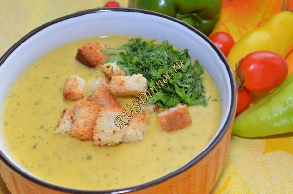 Крем-суп из кабачков Ингредиенты: Кабачки - 700 гр. Картофель - 350 гр. Морковь - 120 гр. Перец болгарский - 200 гр. Лук репчатый - 2 шт. Чеснок - 3 зуб. Сыр плавленый для супа и соуса - 2 шт. Масло растительное - 100 мл. Масло сливочное - 30 гр. Укроп - 1 пуч. (+ петрушка) Приправа базилик сушеный - 5 гр. Соль - 10 гр. Перец черный молотый - 4 гр. Паприка - 7 гр. (копченая) Вода - 600 мл. Источник: https://rusdinner.ru/page/krem-sup-iz-kabachkov