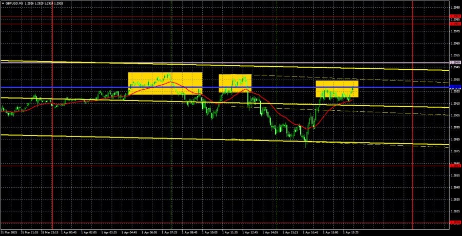 https://basechop.ru/wordpress/?p=36568 Анализ GBP/USD 5М. Валютная пара GBP/USD во вторник продолжала торговаться в том же ключе, что и в последние несколько недель. В последние 2 недели все движения протекают между уровнями 1,2863 и 1,2981. Линии индикатора Ишимоку игнорируются во флэте. Макроэкономический фон не имеет никакого значения, потому что цена все равно движется вбок. Таким образом, техническая ситуация на рынке по фунту сейчас «супер-привлекательная». Конечно, на отдельно взятые отчеты рынок проявляет реакцию, но такие движения просто бессмысленно отрабатывать. Вчера в Великобритании был опубликован отчет по деловой активности в секторе производства за март. Показатель снизился до 44,9 пунктов, хотя рынок ожидал значения 44,6. И как охарактеризовать этот отчет? Деловая активность вновь упала, но не так сильно, как прогнозировали эксперты… Впрочем, из Британии по-прежнему поступает немного позитивной информации. В Штатах, помимо индекса ISM, был опубликован отчет по…