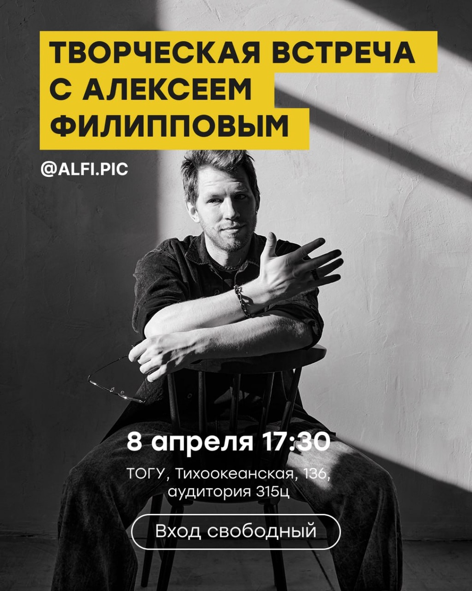 Фотоклуб «Белый слон» устраивает творческую встречу с одним из наших самых ярких выпускников — Алексеем Филипповым!