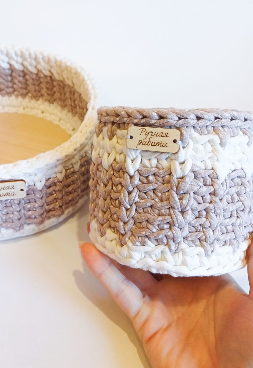 Приз на выбор🎁 набор корзинок из трикотажной пряжи на деревянном донышке