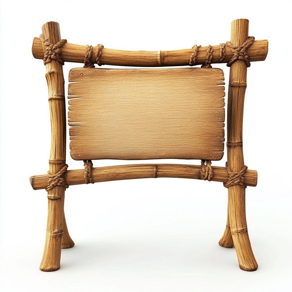 Создано на основе запроса: an empty square sign with a curve on the top for kids made of bamboo sticks and wood planks