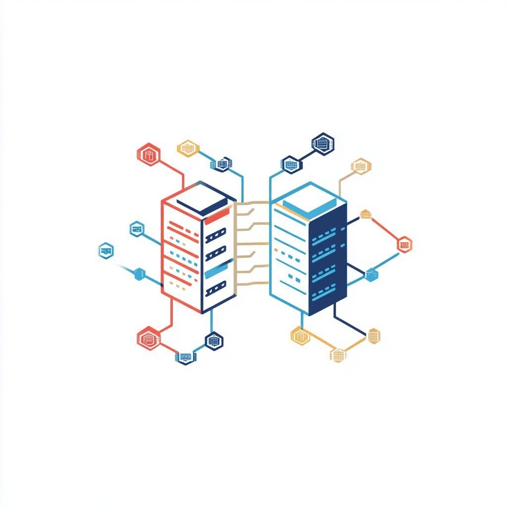 Создано на основе запроса: white background, icon representing data center digital twin, modern logo design