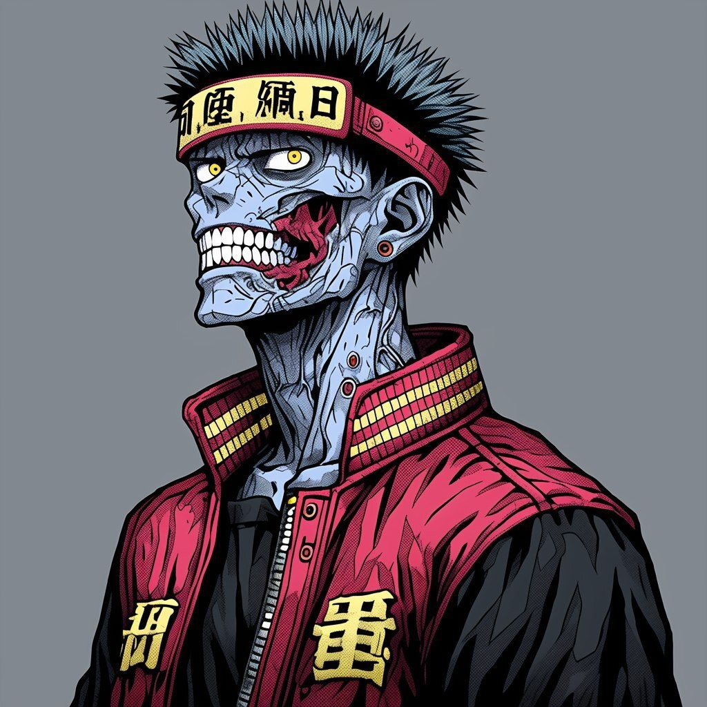 Создано на основе запроса: profile portrait photo of zombie monster against a gray background, Katsuhiro Otomo - Akira style