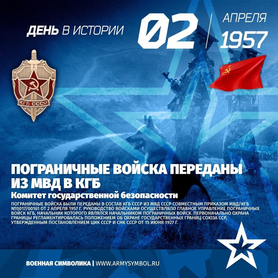 Пограничные войска были переданы в состав КГБ СССР из МВД СССР совместным приказом МВД/КГБ №0017/00161 от 2 апреля 1957 г. Руководство войсками осуществляло Главное управление пограничных войск КГБ, начальник которого являлся начальником пограничных войск. Первоначально охрана границы регламентировалась Положением об охране государственных границ Союза ССР, утвержденным Постановлением ЦИК СССР и СНК СССР от 15 июня 1927 г.